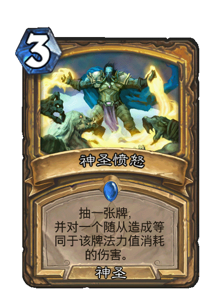 不知道是社区抱怨元气骑的太多,还是上帝之枪带着他的邪恶甲板远征东欧的恐怖战绩震惊了官方(【Reddit】我认为我们已经不需要害怕上帝之枪,上帝之枪的神圣愤怒甲板已经被平衡制作者摧毁! )。就在不久前的34.0.2补丁中,设计师一刀砍死了神圣愤怒。
