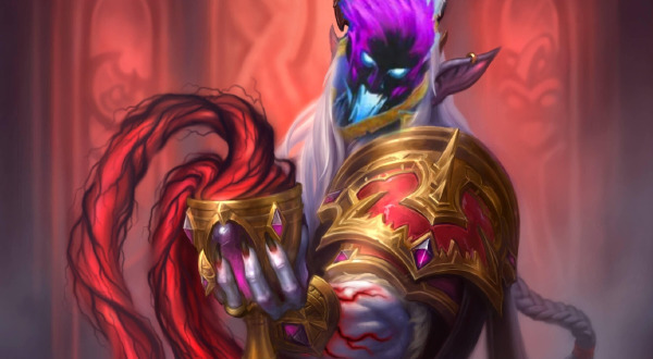 在标准模式辉煌一时后,元气骑没能再次迎来关键性的补强。随着西瓦尔拉,猛虎之神和暂避锋芒等组件退环境,它只得告别标准舞台回归狂野。然而其“过空牌库→洗入猛虎之神→打出元气弹”的combo在节奏紧凑的狂野模式中显得过于迟缓。于是,玩家的目光投向了“拉斯塔哈大乱斗”的另一张橙卡——“高阶祭司塞卡尔”。