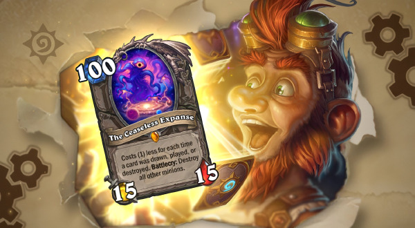 尽管元气骑这些日子补强不断,但在那个40血遍地走的环境,反倒是数值这一块有些不够看了,25血的斩杀线极易被部分职业规避。卡组急需一张费用更高、数值更强的终结手段。而当元气骑玩家还在苦苦哀求出一张30费的新卡来达成元气弹满血斩时,设计师直接大手一挥,摆出了费用高达100的无界空宇。