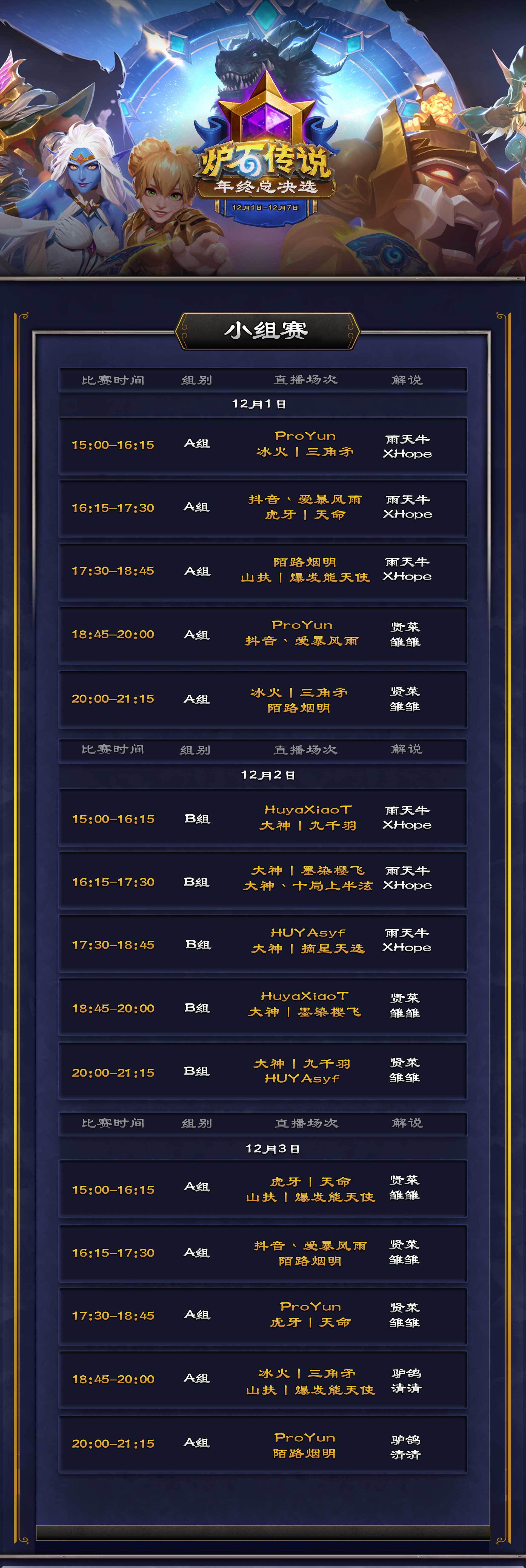 炉石电竞今年最后一场国内选拔“年终总决选”今天正式官宣,将几乎马不停蹄地从下周一开战,距离秋季预选赛仅一周后。夏季四强、秋季四强、全年积分前四将决出最终4人代表国服出征年终总决赛。