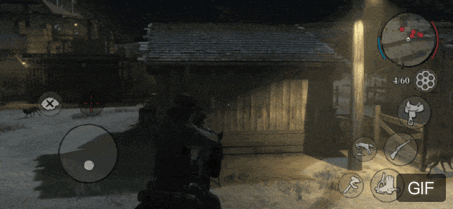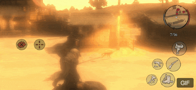 手游版基本原汁原味还原了原版,游戏体验之类的姬在这里不多说,咱们主要来说一说移植版上操作方面的事情——操作的感觉还不错,骑马的感觉上等,在马背上射击很有当西部牛仔的感觉。