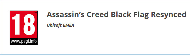 X用户@CorkbenYT发现,欧洲游戏分级机构PEGI已经完成了《刺客信条4:黑旗Resynced》的分级,发行商为育碧EMEA。“Resynced(重新同步)”副标题似乎是育碧对“remake”(重制版)或“remastered”(高清复刻版)的巧妙诠释。