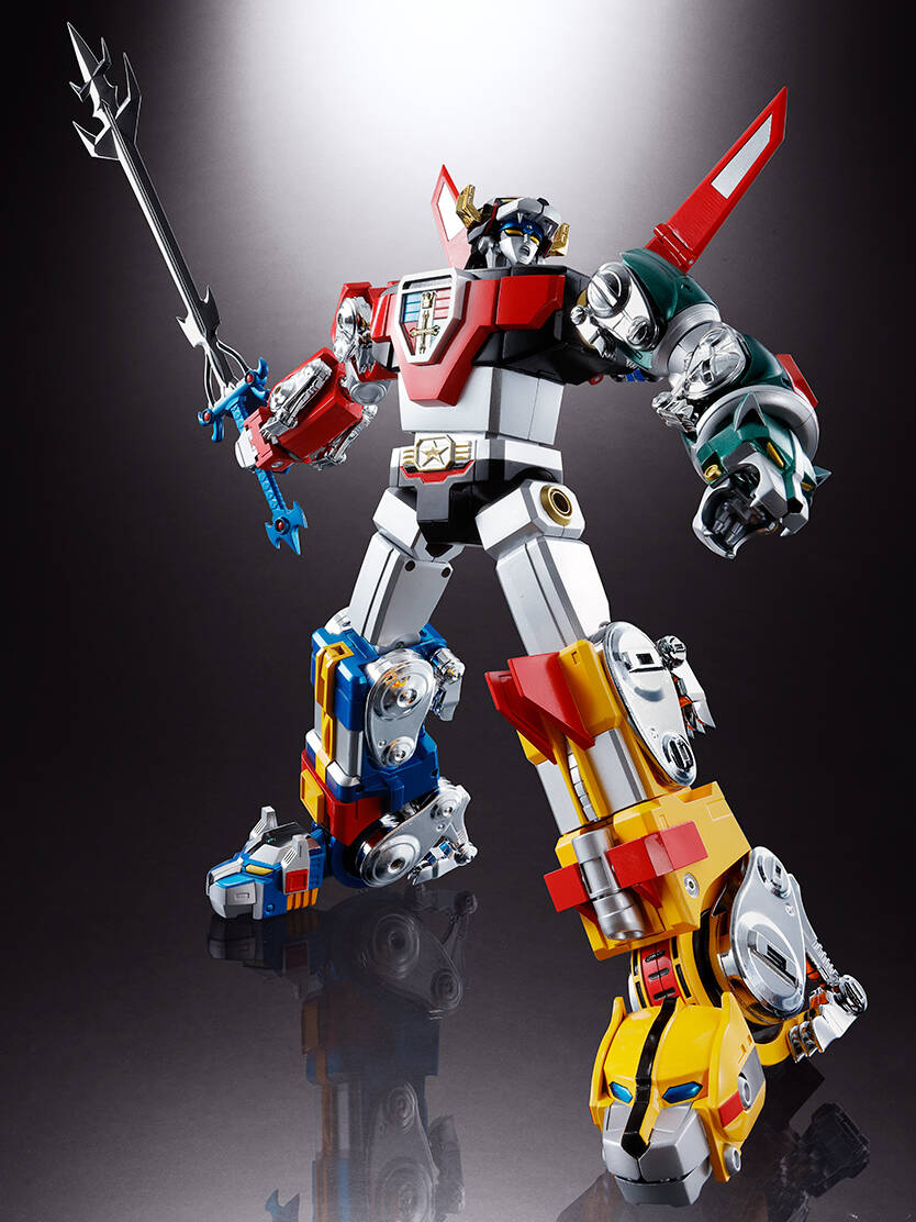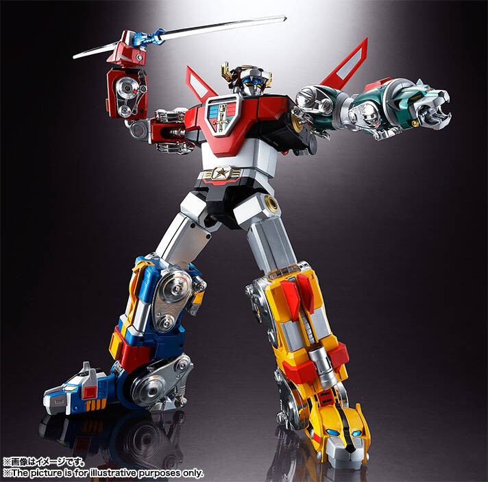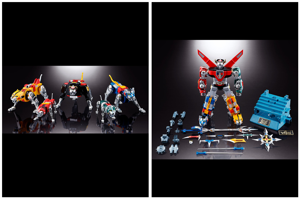 商品には多数の武器をセット。各々の獅子に装備できる銃型武器、剣型武器をはじめ、五獣合体ロボット時に装備できる十王剣やスペースカッターも付属。合体後の象徴的な必殺技シーンの叫び顔は顔パーツを差換える事で再現可能!各獅子の蹲踞、いわゆるお座りポーズまで考慮した可動機構により作中通りの幅広いポージングを取れる。これら全ての付属パーツは作中の城をモチーフにした台座に収納出来ます。