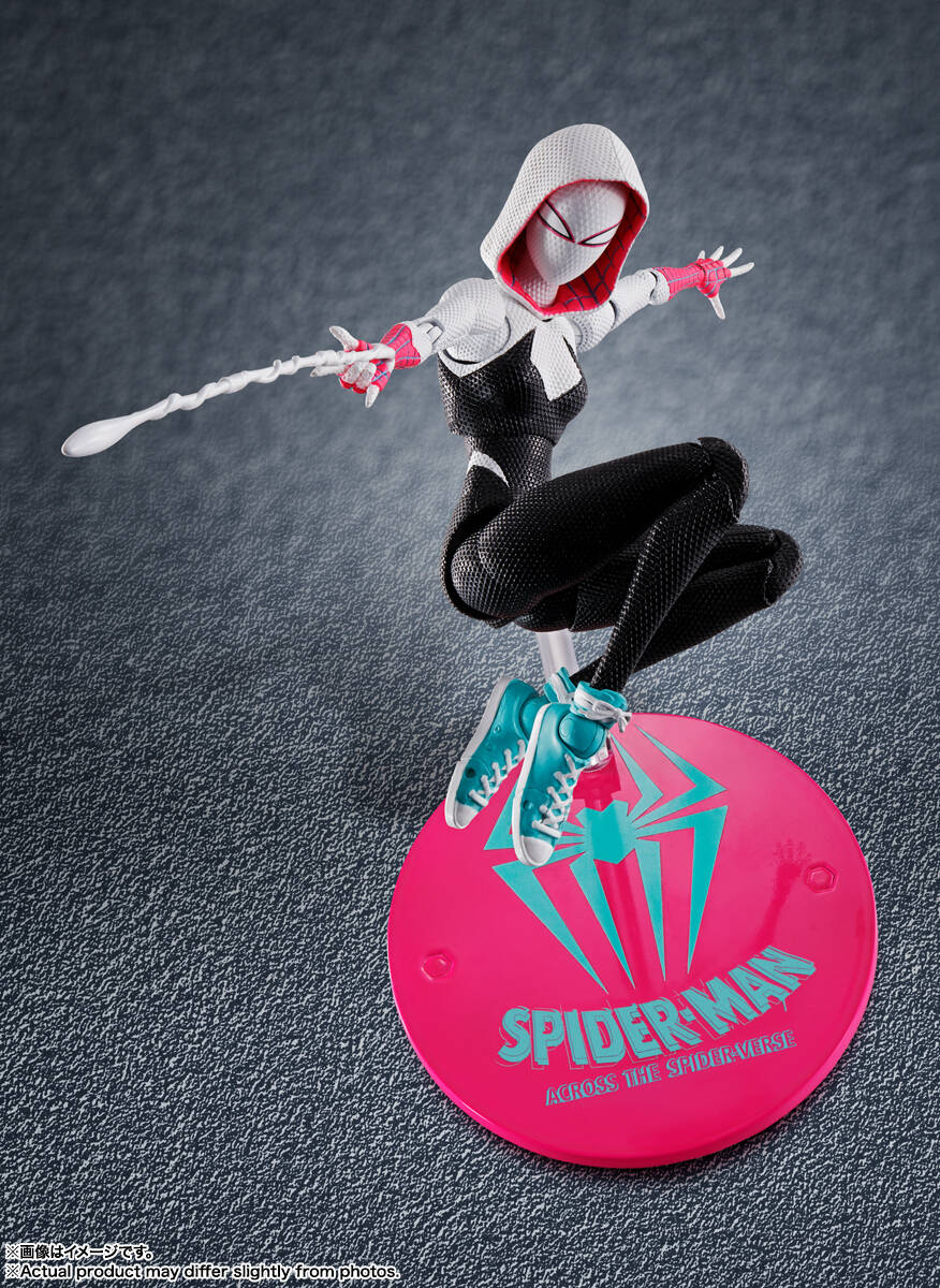 『スパイダーマン:アクロス・ザ・スパイダーバース』よりもう一人の主人公の「スパイダーグウェン」が商品化!素顔パーツに加え、スパイダーウェブは長/中/短の3種が付属。ロゴ入り専用台座が付属し、広い可動域で各種ポーズを再現可能。