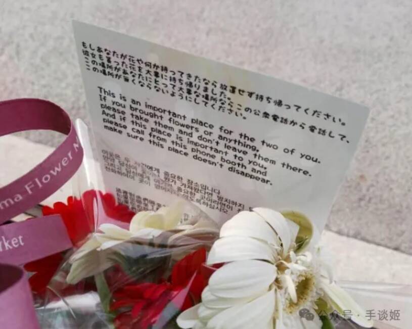至于前面提到的那个电话亭里面也贴了一张以多语言书写的小纸条,表示“如果粉丝带了花来请注意不要留下,蕾塞也很珍惜地把花带回去了。如果你觉得这个地方对你很重要请在这里打个电话,让这地方不要消失。”