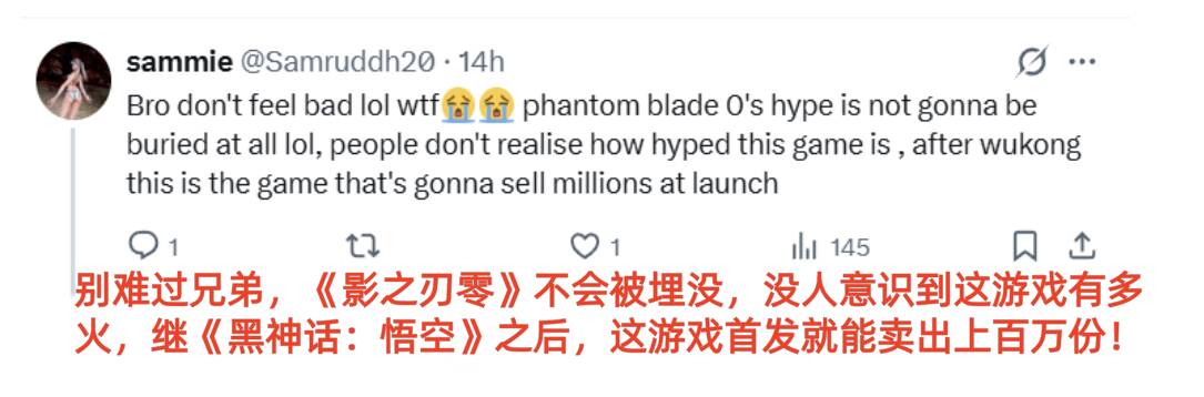 还有不少玩家大胆预测,《影之刃零》有望凭借多平台优势与来自中国本土的玩家基础,创造超越《漫威金刚狼》的销量成绩。《漫威金刚狼》是PS5独占游戏,仅能覆盖索尼主机玩家群体,而《影之刃零》同时登陆PS5与PC平台,既覆盖主机玩家,也能吸引庞大的PC游戏用户,这一优势让其受众范围大幅扩大。更重要的是,《影之刃零》拥有坚实的中国玩家基础,加之其海外关注度持续走高,形成了强大的全球销量潜力。