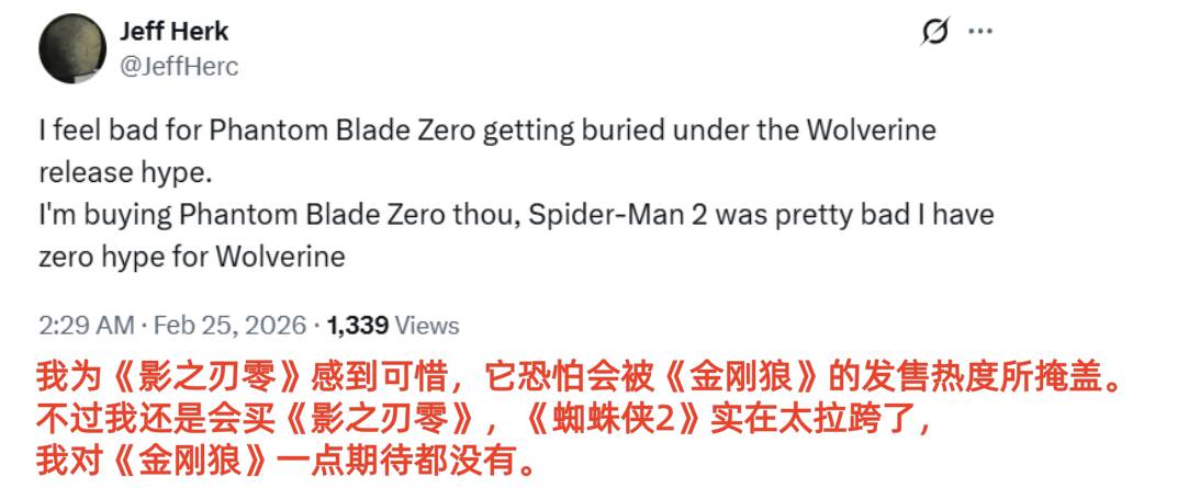 当然,也有部分玩家担忧《影之刃零》作为全新IP,可能会被《漫威金刚狼》强大IP的影响力所淹没。金刚狼拥有多年积累的全球粉丝基础,加以索尼强大的发行渠道与宣发实力,而《影之刃零》作为国产新IP,即便在海外已积累一定关注度,仍难以与这种老牌超级英雄IP抗衡。尽管如此,依然有不少玩家对《影之刃零》保持着更高的期待。