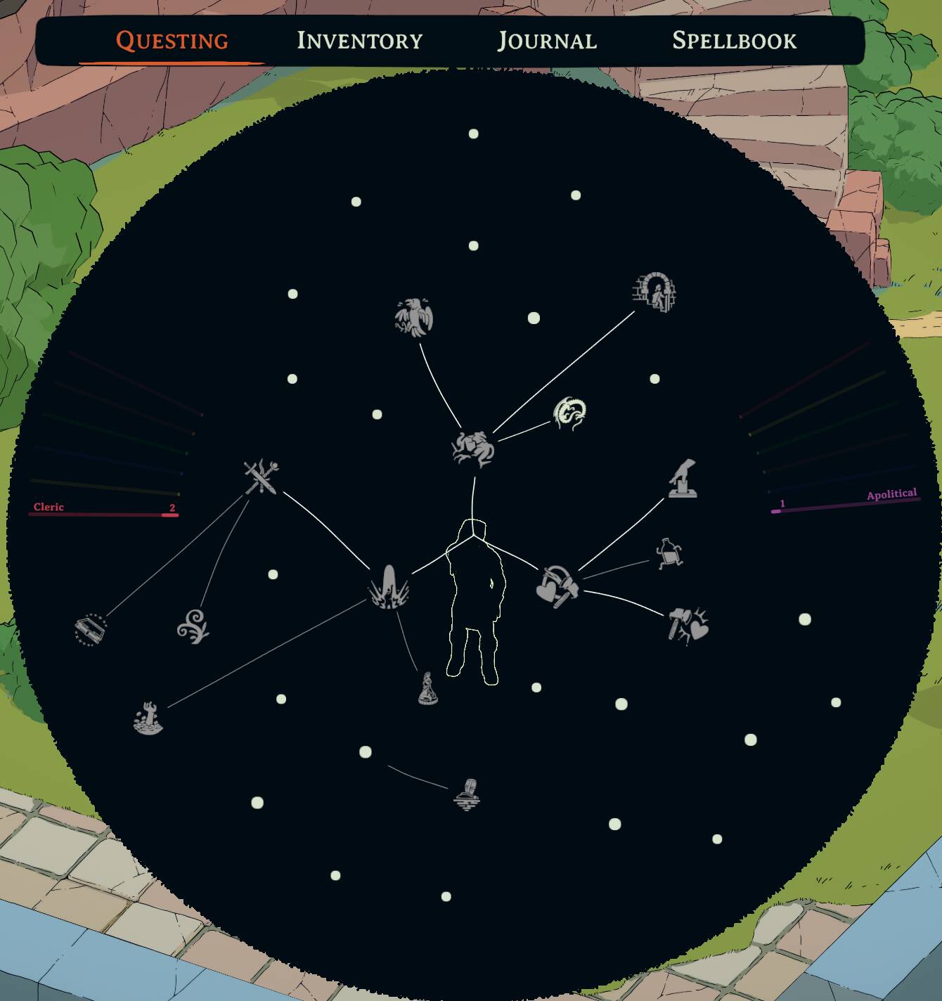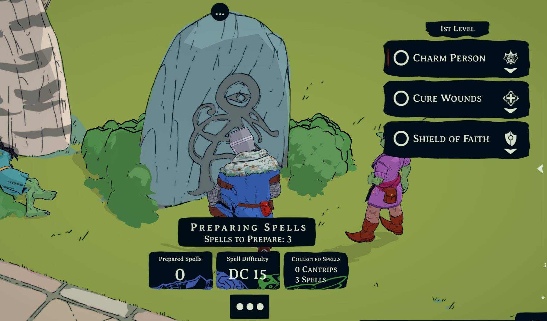 游戏初期,玩家便会得知一个消息:牧师的施法书(或者说祈祷书)在他随牧师一同落水时被损坏了。玩家需要从施法卷轴或其他施法者那里重新收集神术魔法,并在对应的祭坛处祈祷、准备法术。各类法术皆出自龙与地下城体系,从治愈伤口的“治疗轻伤”,到“护盾术”、“魅惑他人”、“亡者交谈”等进阶咒语。善用这些咒语,可以为行动增添助力,或仅仅是为了将死者短暂带回,倾听他最后的遗言。