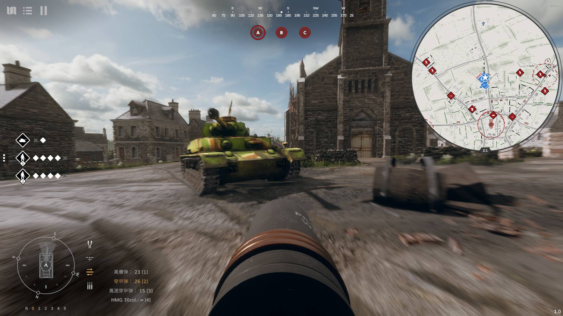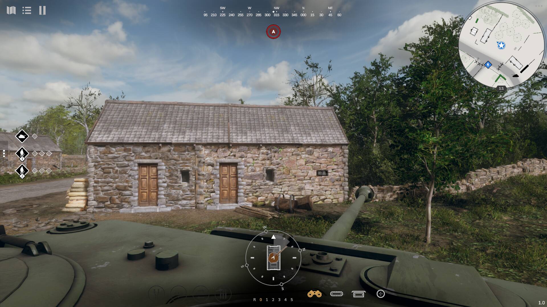 视角被限制在车长位置的那个小观察窗里,视野窄得让人发慌。想看看外面的情况,你得手动操作把头探出舱盖,然后很快你就会发现,这个动作极其危险,敌人的机枪手很喜欢干这种事。移动不是按WASD,而是要通过指令告诉驾驶员前进、后退、左转、右转。开炮也不是点一下鼠标就完事,你得先命令炮手转动炮塔,再命令装填手选择弹种,最后才能下达开火指令。