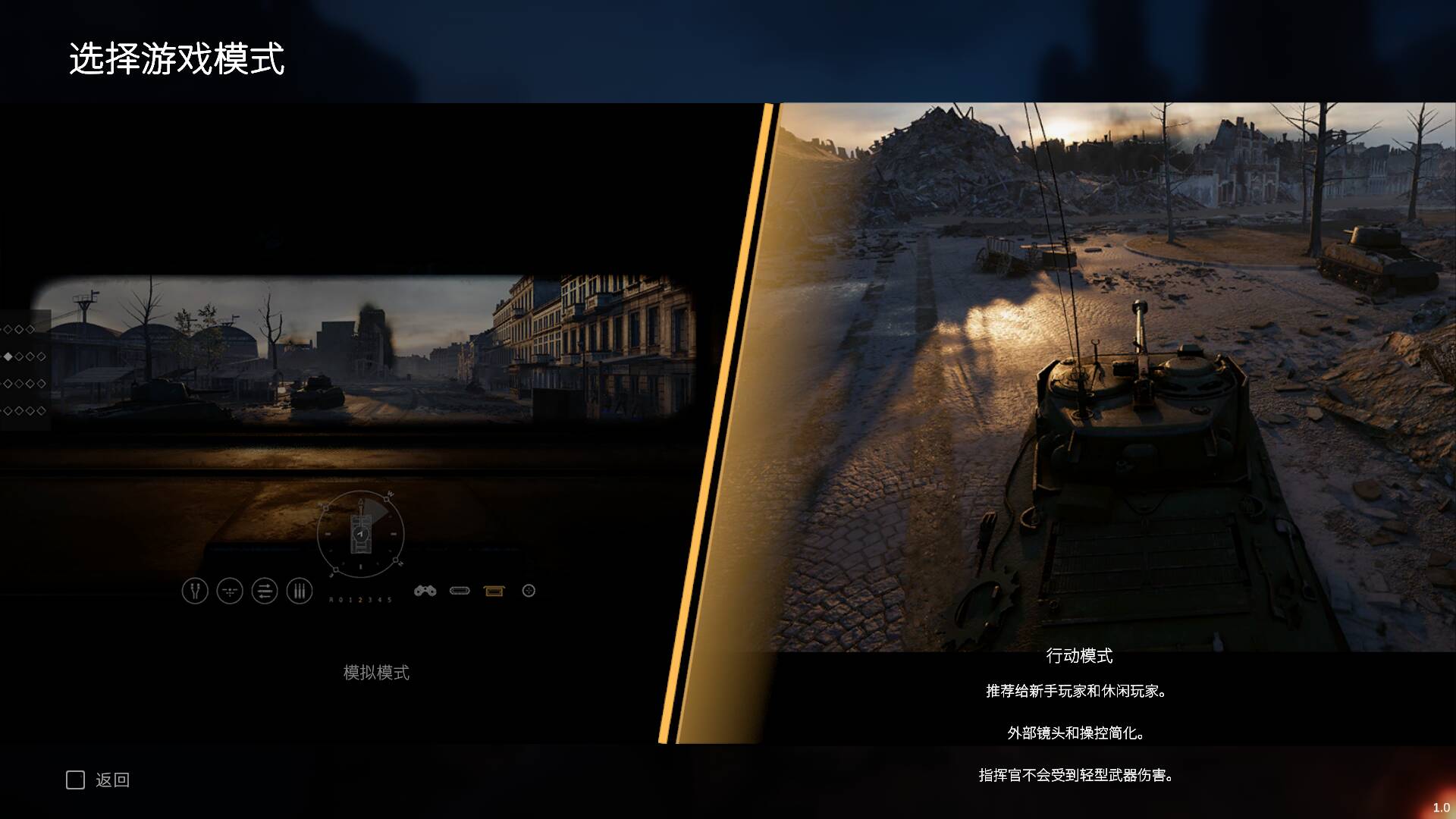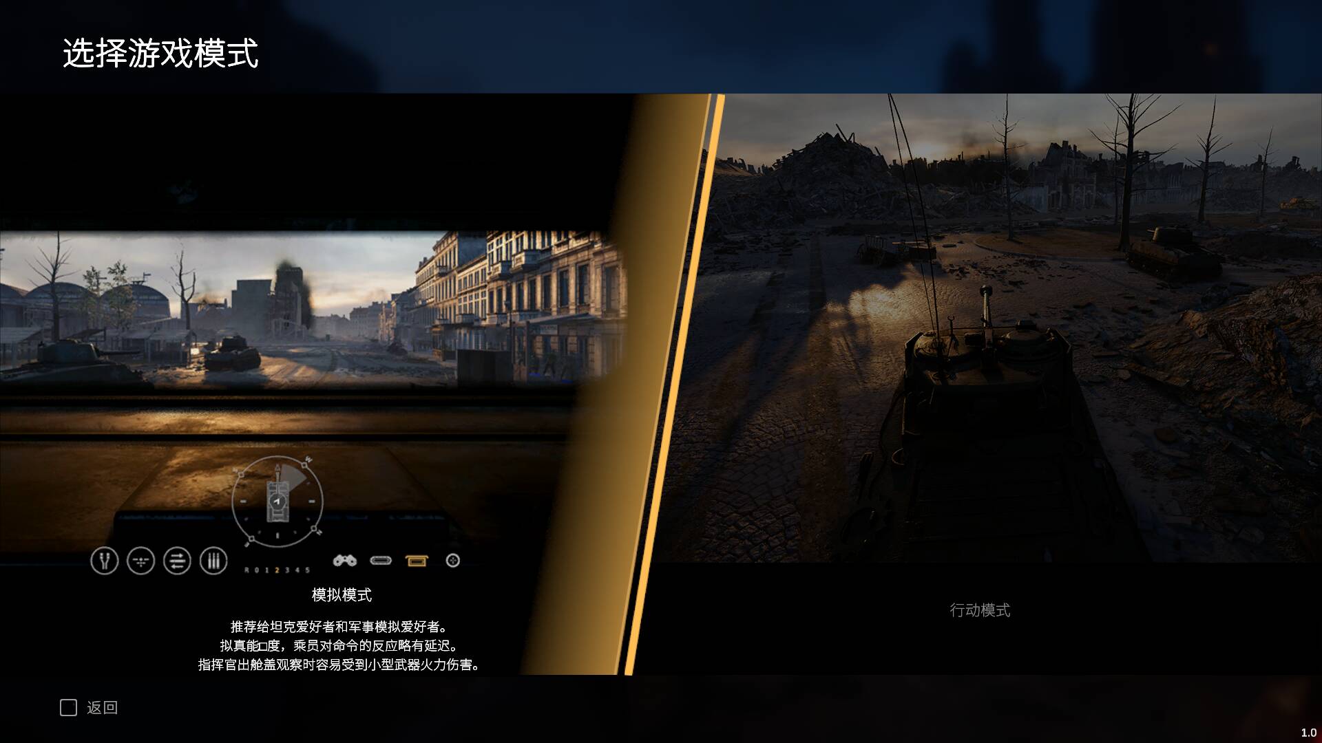 游戏提供了两种操作模式,这个设计本身还是很不错的。一种是“行动模式”,采用第三人称视角,操作逻辑相对常规——鼠标控制炮塔,键盘控制车体移动,想开炮就点一下左键。另一种是“模拟模式”,这才是真正的硬核玩家的菜。