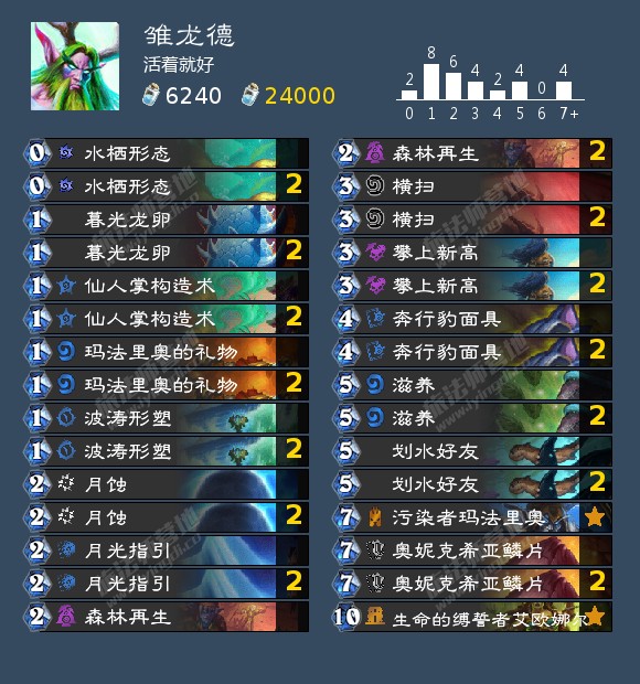 攻略就是前期苟活控场。等高费使用艾维那,等手牌都变1费时就可以用水霸小熊猫无限战场了。奥金尼战场,刷刷刷就完事了。担心没怪可以把紫罗兰换成基尔加丹。