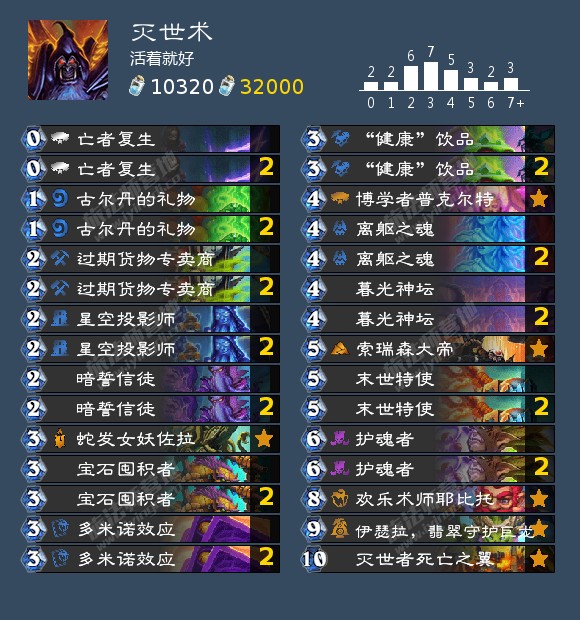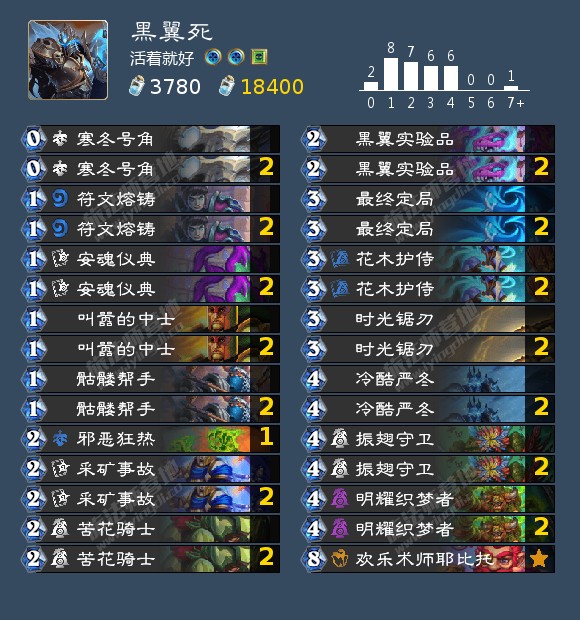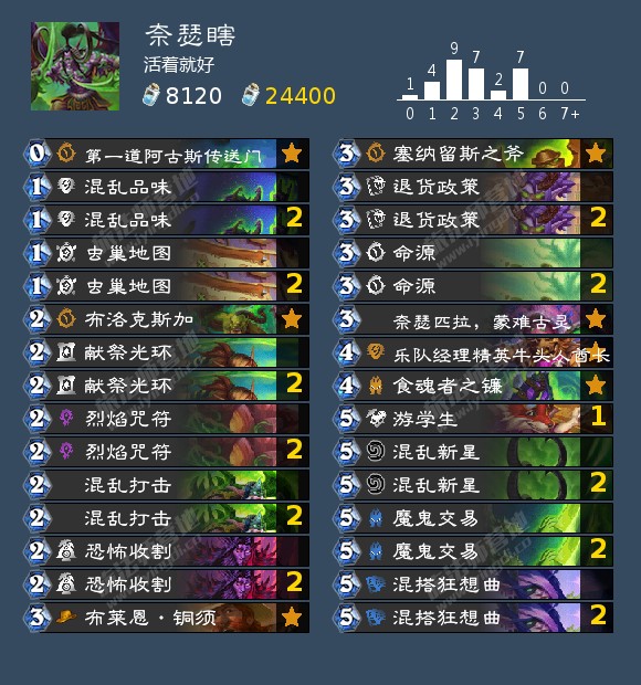 累积型成就,十分精污。由于没法配合534亵渎,所以只能自己一个个送。作者我带的2个2费aoe也是为了清自己的格子。