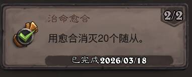 累积型成就,很简单。本来作者我打算用虚灵任务套的,后来想起了牧师的荒野之神,就改成控制牧了。