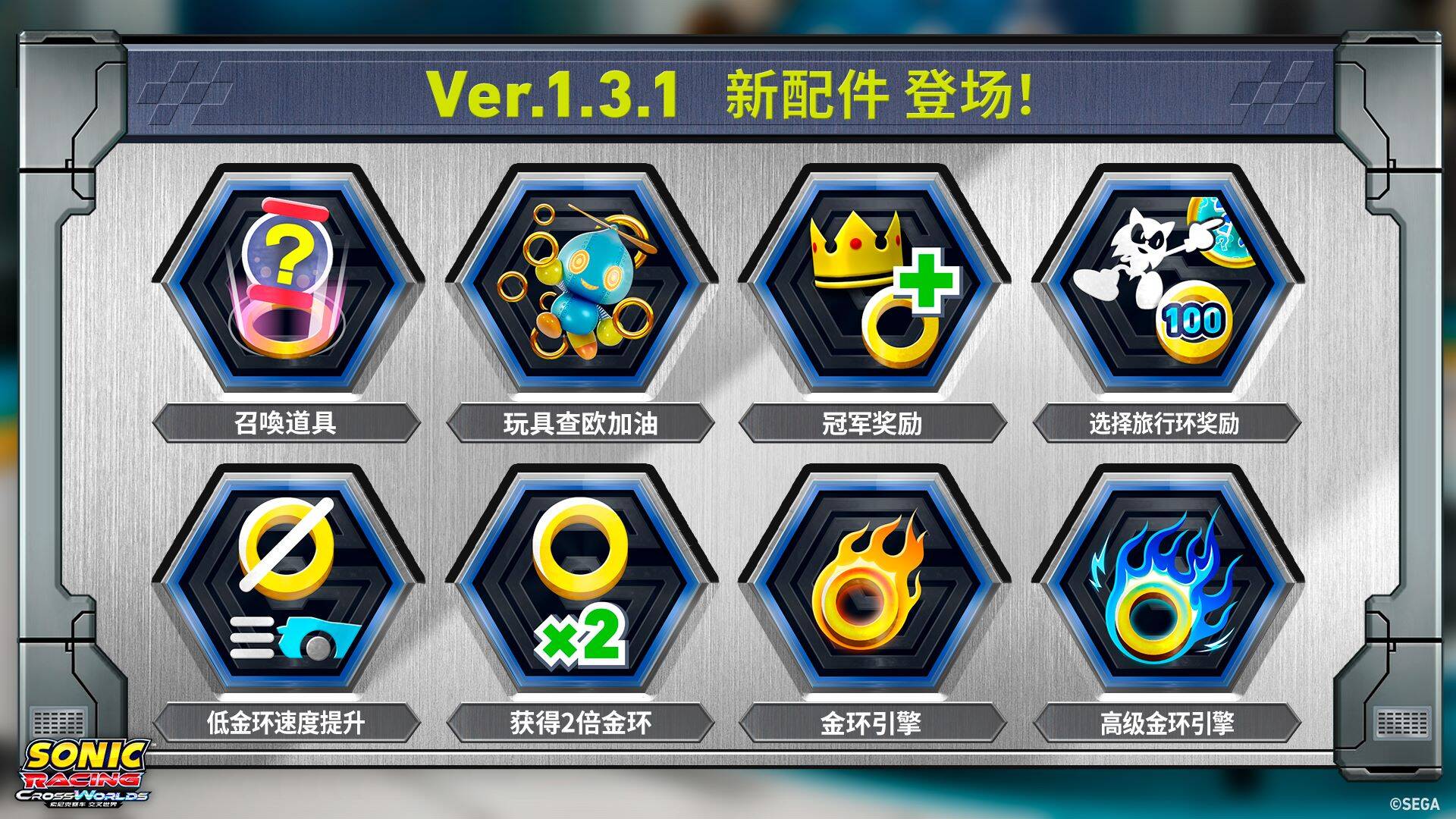 《索尼克赛车 交叉世界》Ver1.3.1版本更新已发布! 新增8种配件