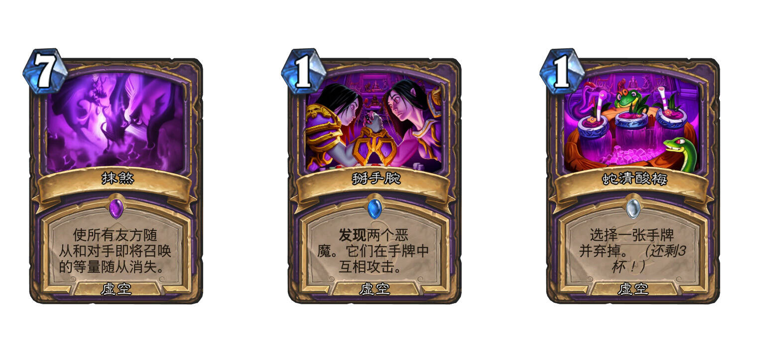 本人对于魔兽的设定不甚了解,但似乎虚空是和暗影不同的另一种能量。派系的选择不太推荐——毕竟虚空和暗影一样都紫不拉几的,容易弄混。也许本作获得票数的原因是卡牌本身足够出色吧。