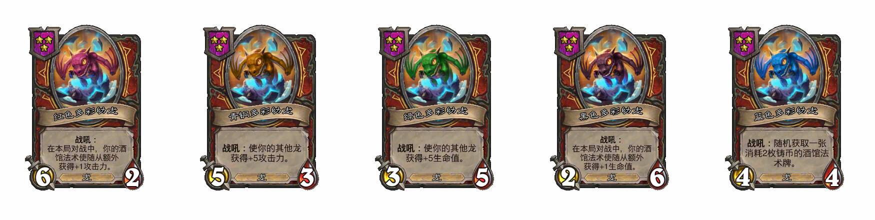 - [龙3费大型] 随机获取2张多彩幼龙。在你使用7张战吼随从牌后,重复此效果。