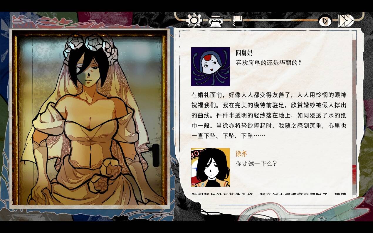 其实笔者并不擅长游玩纯粹的视觉小说类作品,其中很大一部分原因在于,与创作者价值观的直接碰撞相当程度会限制游戏性的表达——更何况其游戏内容大多集中在分支剧情与逻辑谜题上,玩法多半在于点击和游戏外思考。不过,如果制作组本身讲述的故事足够“疯狂”,那么在叙事层面之外,或许也能留给读者足够的空间与作者并肩而立。因此,本篇笔者也将更多介绍自己的游戏体验。